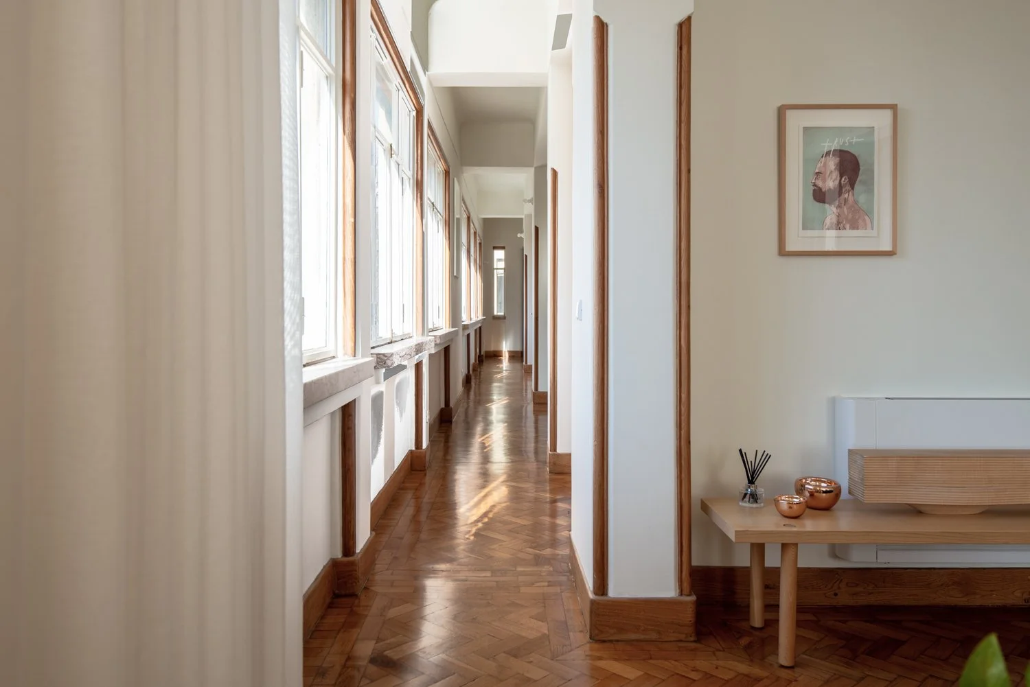 Singer is an apartment renovation named after the building where it´s located. Built in 1939, in the iconic Rua de Sá da Bandeira, the Singer building is an Art Déco landmark in the heart of the city of Porto. The new design looks carefully at the original details and material palette and reinterprets them into a new layout, less compartmentalised, open and flexible to its new occupants.